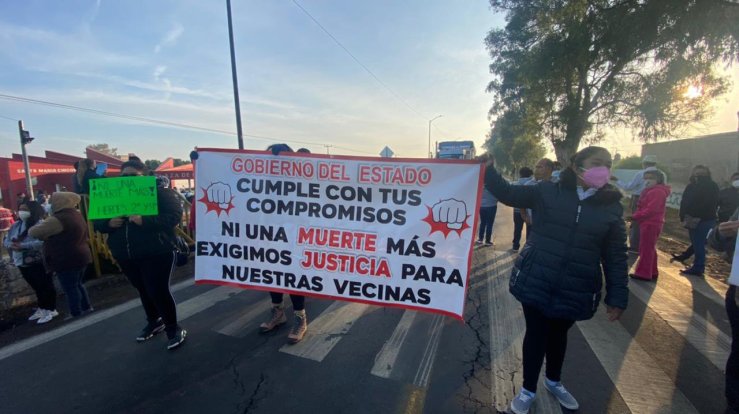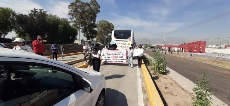 ¡Queremos paso seguro, reductores de velocidad y semáforos!, reclamaron colonos inconformes en su mayoría mujeres, por las condiciones de riesgo en la zona.