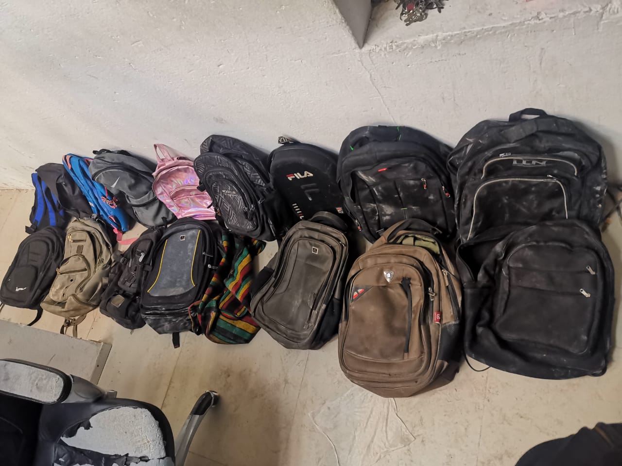 A estos individuos les fueron aseguradas dos armas de fuego, una navaja, así como 16 mochilas, teléfonos celulares, diversas tarjetas bancarias, licencias para conducir, credenciales de elector, memorias USB, chips para teléfonos y un reloj.