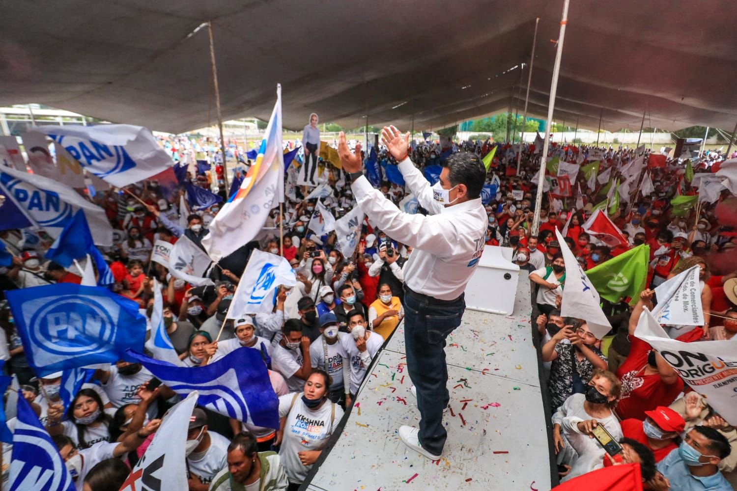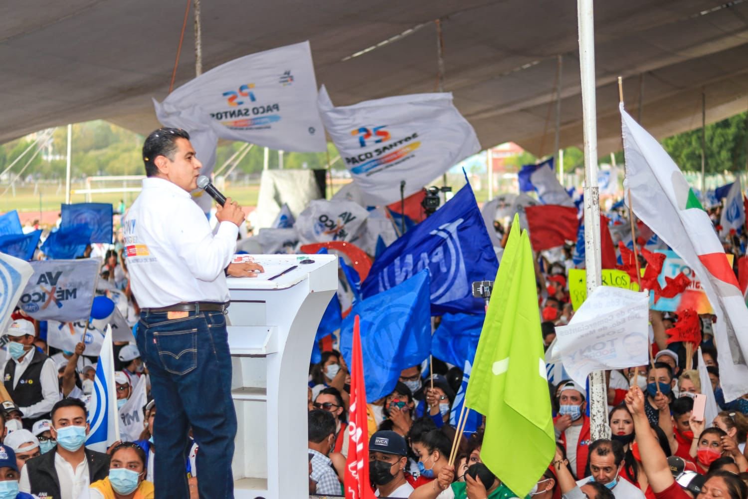 Durante el cierre de campaña realizado en San Cristóbal Centro, el abanderado de la Coalición Morena-PT-Nueva Alianza, agradeció haber recuperado la salud tras padecer Covid al inicio de campaña, y una vez cumplido el confinamiento poder salir a recorrer calles y comunidades del Distrito 21.