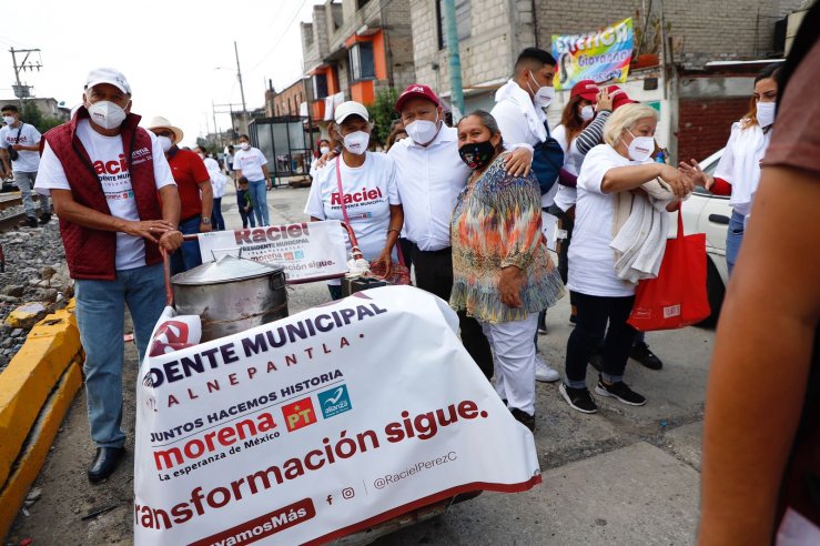 Raciel Pérez Cruz recorre calles de Tlalnepantla, recibe el apoyo incondicional de la ciudadanía.Tlalnepa tla, Méx.- Raciel Pérez Cruz, candidato a la Presidencia Municipal de Tlalnepantla por la coalición ‘Juntos Haremos Historia en el Estado de México’, realizó recorridos y reuniones con vecinas y vecinos de San Bartolo Tenayuca, F.F.C.C. Cecilia Mora Viuda de Gómez, Izcalli Pirámide y San Lucas Patoni, quienes le expresaron su apoyo para que continúe al frente del gobierno de Nuestra Ciudad.El abanderado de MORENA, PT y Nueva Alianza inició su séptimo día de campaña con un encuentro con habitantes del pueblo San Bartolo Tenayuca, en donde se aplicaron las medidas sanitarias correspondientes. Pérez Cruz indicó que “en este gobierno se han dado los primeros pasos para lograr la ciudad segura, sustentable e incluyente que todos deseamos”.Expresó que con el voto de la ciudadanía el 6 de junio se dará continuidad a la estrategia de sanear la deuda pública del gobierno municipal para destinar más recursos a programas sociales, servicios y obra pública.El candidato de ‘Juntos Haremos Historia en el Estado de México’ efectuó un recorrido en calles de la colonia F.F.C.C. Cecilia Mora Viuda de Gómez, en donde de manera respetuosa pidió casa por casa el apoyo de la ciudadanía, reconoció que aún falta mucho por hacer y se comprometió a continuar trabajando para consolidar la transformación del municipio con la reconstrucción de calles, mejores servicios públicos y depuración de la policía municipal.Posteriormente, Pérez Cruz se reunió con vecinas y vecinos del fraccionamiento Izcalli Pirámide y realizó ‘toque de puertas’ por diversas calles del pueblo San Lucas Patoni acompañado de simpatizantes y líderes sociales, para concluir con una reunión vecinal con habitantes de esta comunidad.