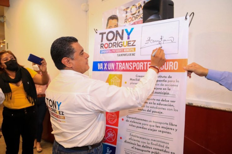rear el Instituto Municipal de Movilidad es una necesidad urgente. Robo de unidades, decesos de transportistas y pasajeros a manos del crimen, así como el cobro de piso, han aumentado aseveran los conductoresTlalnepantla, Méx.- Tony Rodríguez, candidato por la coalición “Va Por el Estado de México” PRI, PAN, PRD, se reunió con líderes de los diferentes gremios del transporte público local, quienes manifestaron su apoyo incondicional y compromiso ante el liderazgo que representa. Los distintos gremio se quejan del abandono y olvido que han sufrido en los últimos dos años por parte de la actual administración.En presidium acompañando al candidato estuvieron, Hipólito Colín, de Línea de autotransportes Grupo Tlalnepantla, Jorge Espinoza, Ruta 26, Sergio Lara, Taxis Tradicionales, así como Edmundo Romero, delegado del PRI y los tres presidentes de los partidos locales que forman la coalición.El abanderado de la coalición ganadora, se comprometió a trabajar de la mano con los transportistas, establecer acuerdos que permitan enfrentar las secuelas que ha dejado la pandemia a la economía y dárles su lugar, su respeto y participación activa, a través de la creación del Instituto Municipal de Movilidad y fortalecer a dicho organismo para que los diputados lo suban hasta que sea una reforma de ley.El robo de unidades, cobro de piso, descensos de compañeros transportistas, así como de pasajeros y falta de un plan de movilidad, son los principales problemas que enfrentan a diario cientos de trabajadores que salen cada día a trabajar sin las medidas mínimas de seguridad, ignorados por el gobierno local, buscan una alternativa real para trabajar en conjunto, opción que encuentran en Tony Rodríguez.Rodríguez Hurtado recordó que “hace 12 años implementamos el transporte seguro, ahora con las nuevas tecnologías y las herramientas digitales debemos ver la forma de cómo estar protegidos, no podemos permitir que el transporte público esté a merced del crimen”.Tlalnepantla fue el primer municipio que tuvo un comité municipal de transporte, fue modelo a nivel estatal y nacional en movilidad y hoy el olvido gubernamental ha rezagado y este rubro tan importante para el desarrollo de la economía local.Este evento se dio bajo las medidas sanitarias adecuadas, cuidando en todo momento la integridad de quienes participaron en los diferentes eventos