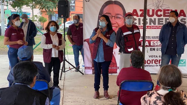 La candidata Azucena Cisneros ofreció buscar acercamientos con la empresa y gestionar mesa de trabajo con autoridades municipales para definir la mejor alternativa que permita la operación de la empresa y reduzca afectaciones a los colonos.
