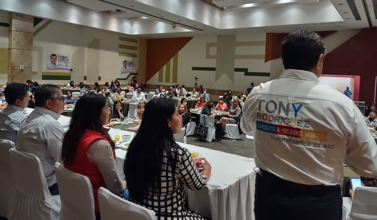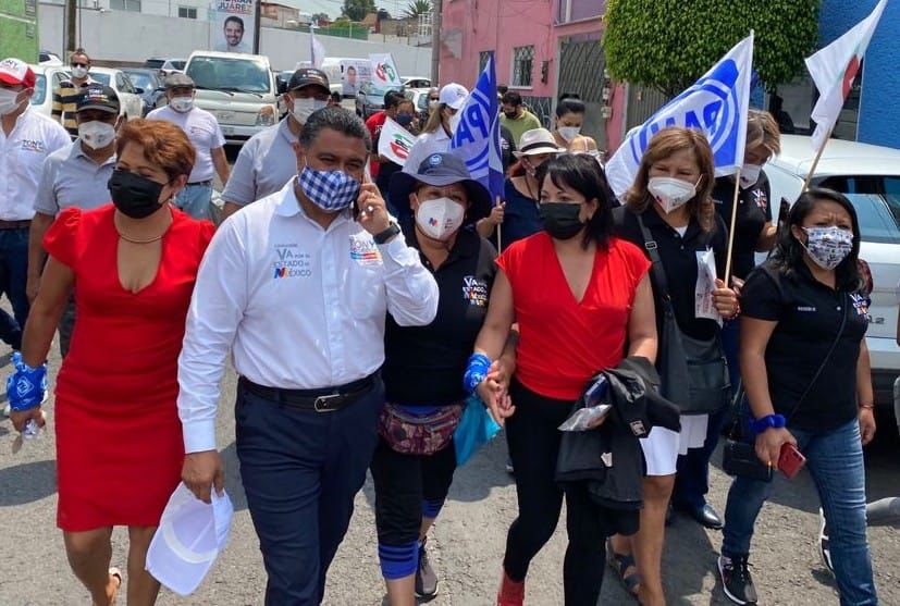 Tlalnepantla, Méx.- Acompañado de una estructura de más de 400 personas, José Domingo Cerrillo, declina su candidatura como diputado del partido Redes Sociales Progresistas por el Distrito 19, e inmediatamente en reunión con aproximadamente 500 mujeres emprendedoras, la candidata a regidora Mariana Hernández, del mismo partido, se unió a la alianza “Va Por el Estado de México” PRI, PAN, PRD, encabezada por Tony Rodríguez.