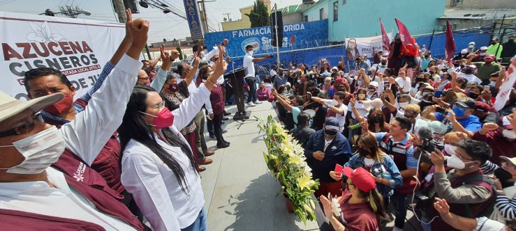 ECATEPEC, Méx.- Con el respaldo de representantes vecinales de las 100 comunidades que conforman el Distrito 8, y acompañada de líderes sociales, la candidata a diputada local Azucena Cisneros realizó su cierre de campaña, donde afirmó que lo más importante para un representante popular debe ser el contacto con la gente, pues sin la comunidad no hay transformación, y se comprometió a que no haya más representantes con privilegios.