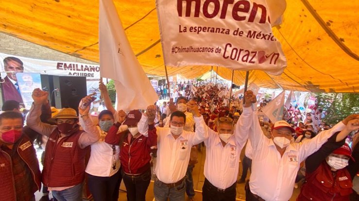 La abanderada morenista pidió el voto de confianza para los candidatos a la diputación local Emiliano Aguirre y a la federal, Carlos Guadarrama, para que desde el Congreso, apoyen para designar más presupuesto a Chimalhuacán, pues conocen las demandas y necesidades de la gente.