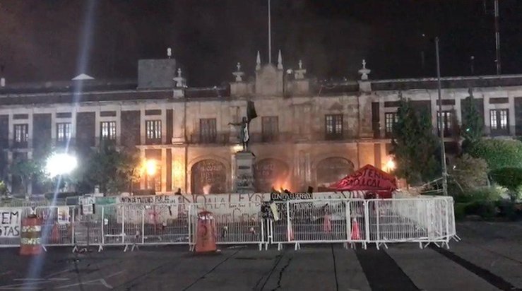 Cerca de las 5 horas, el grupo violento denominado Feministas Indómitas Radicales que mantiene un plantón desde hace casi tres meses, afuera de la Legislatura, comenzó a lanzar bombas molotov y a incendiar las puertas de madera en el frente del edificio, por segunda ocasión, luego de que en marzo ocasionara graves daños.