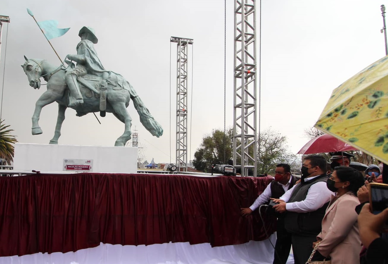 Nicolás Romero, Méx.- Como parte de las acciones para recuperar la grandeza de esta ciudad, el alcalde Armando Navarrete López, develó en la explanada del Palacio Municipal, una estatua monumental del coronel Nicolás Romero, el principal prócer de la localidad y cuya efigie, representa la identidad histórica de los nicolásromerenses, así como los ideales de los mexiquenses y mexicanos, a favor de la libertad, la justicia y la democracia.