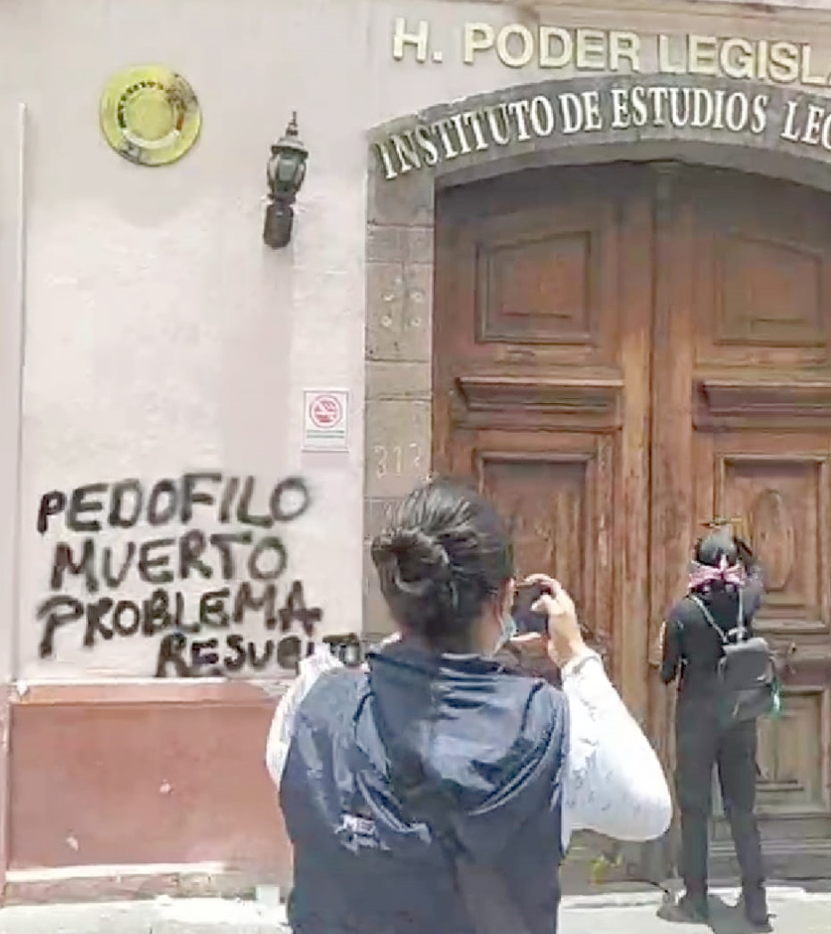Toluca, Méx.- A menos de un mes de que incendiaran las puertas del Poder Legislativo, un grupo de feministas salió nuevamente a las calles ahora para vandálizar las instalaciones del Instituto de Estudios legislativos del Estado de México y la Biblioteca de Poder Legislativo sin que intervinieran autoridades estatales para impedirlo.