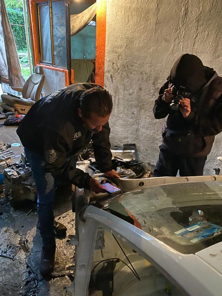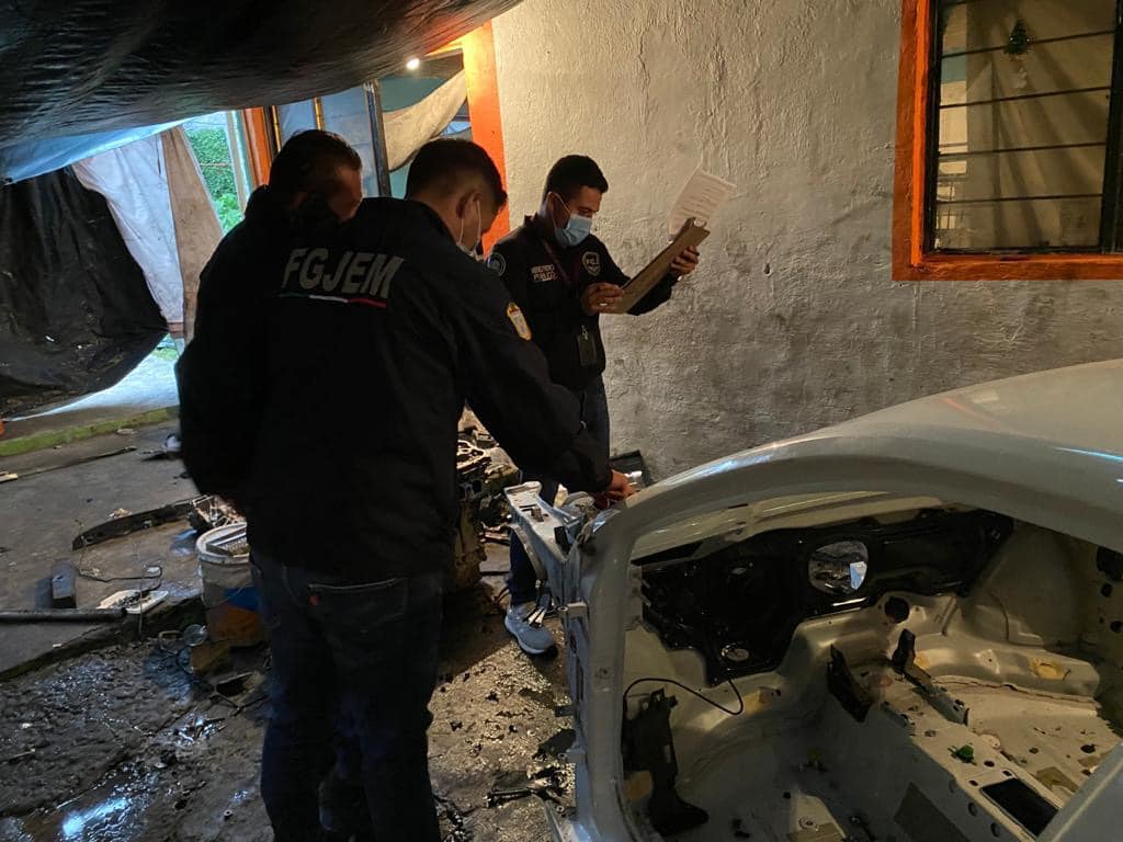 Por otro lado, Agentes de la FGJEM catearon un domicilio ubicado en la calle Niños Héroes, en el Barrio Carpinteros, en Chimalhuacán, donde fue hallado lo siguiente: Ocho facias de automóviles, sin medios de identificación, 10 puertas de distintos automóviles, sin medios de identificación, Cinco cajuelas de distintos vehículos automotores, sin medios de identificación, Ocho salpicaderas, sin medios de identificación.
