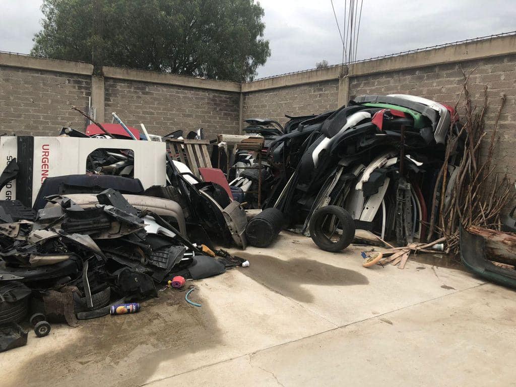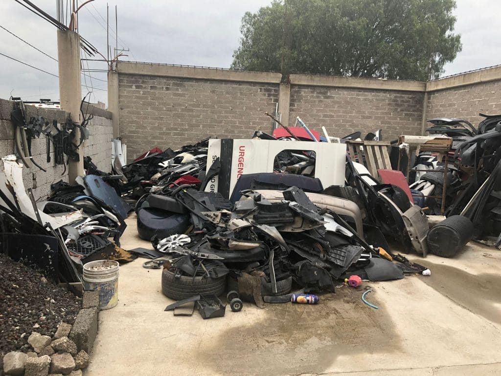 En una acción, los servidores públicos se trasladaron a un inmueble de la colonia La Joya, en Chimalhuacán, donde fue localizado lo siguiente: 40 facias de automóviles de diversos tipos, sin medios de identificación, 43 puertas de distintos automóviles, sin medios de identificación, 21 cajuelas, sin medios de identificación, 15 cofres, sin medios de identificación.
