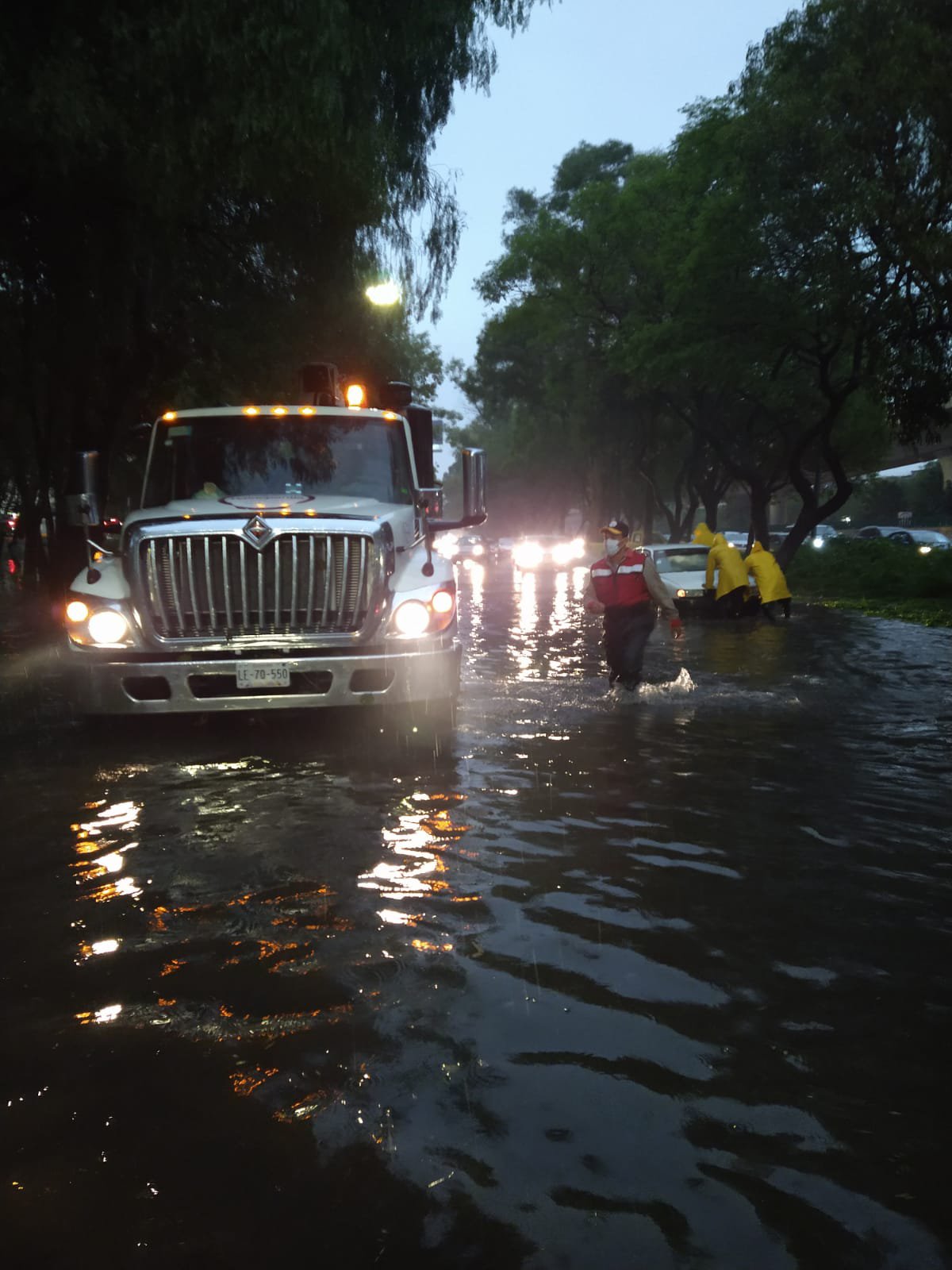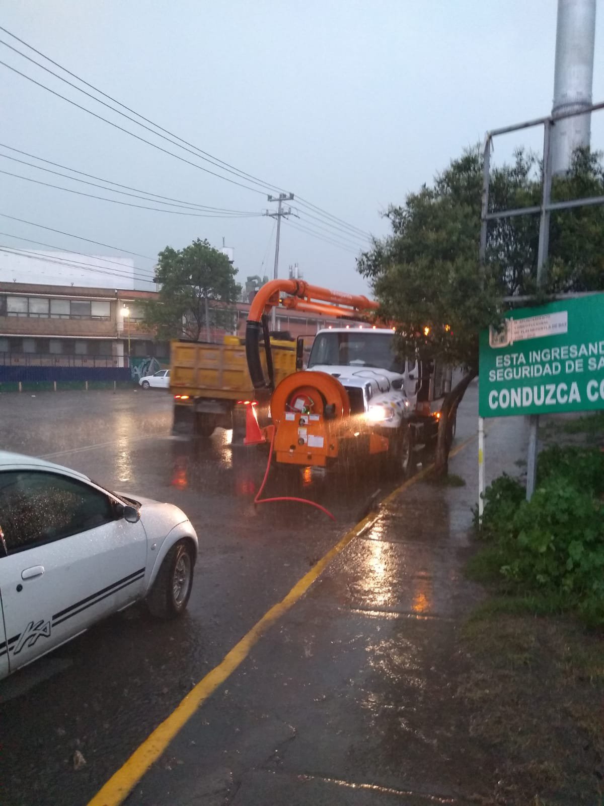 Tlalnepantla, Méx.- Tras las fuerte lluvia registrada esta tarde en todo el municipio de Nuestra Ciudad, sobre todo en la zona centro de Tlalnepantla unidades de la Coordinación Municipal de Protección Civil se ubican estratégicamente cerca de los puntos de riesgo.