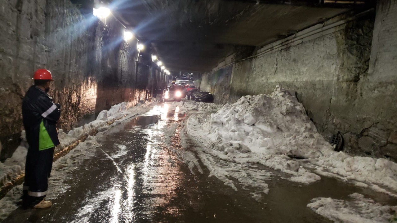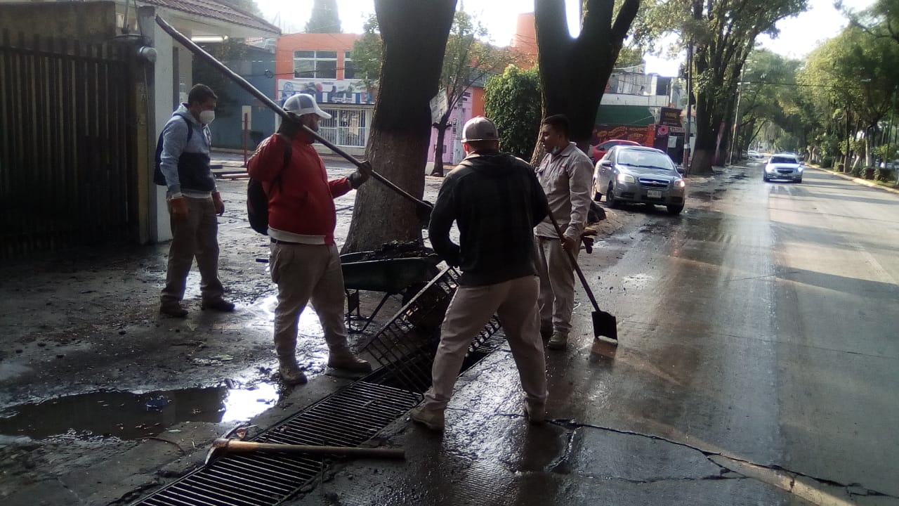 Durante la noche de ayer y la madrugada de este martes, cuadrillas de trabajadores del organismo participaron en el retiro de hielo del paso a desnivel de Mario Colín y Periférico, limpiaron coladeras en Rancho San Rafael y recolectaron lodo y hojas en Valle Dorado.