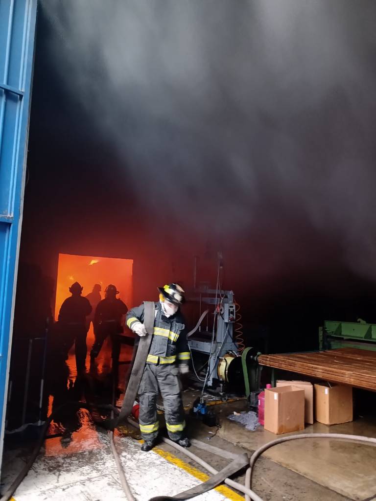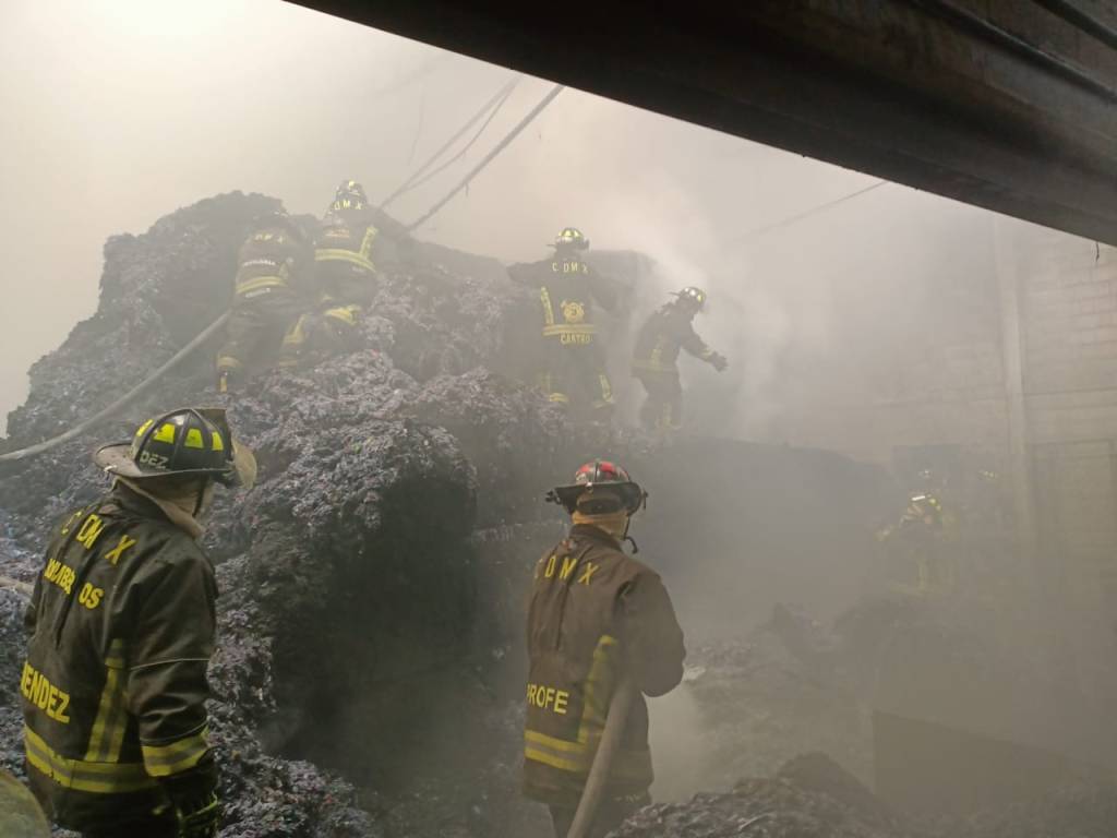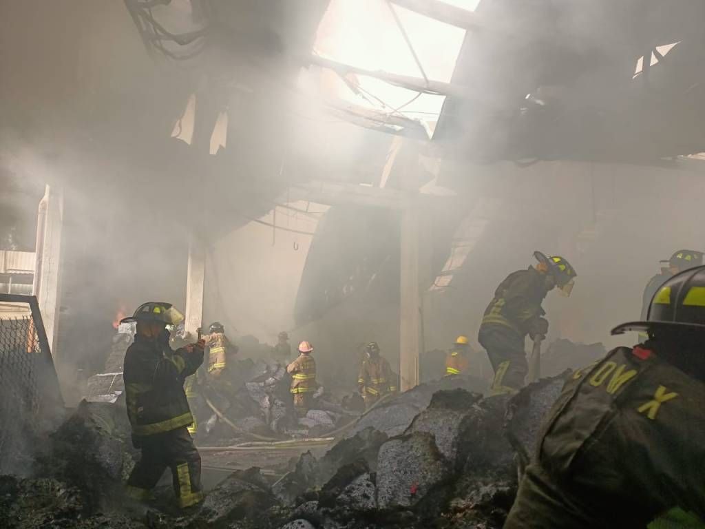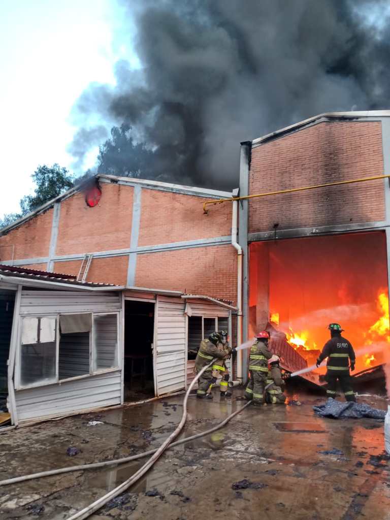 El incendio se registró en un área aproximada de 2 mil metros cuadrados donde se almacenaba poliuretano, hule espuma y materiales diversos para la fabricación de colchones. Se efectúan trabajos de enfriamiento y remoción de escombros.