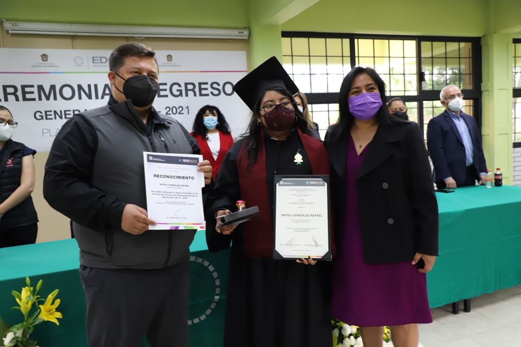 Acompañado por su esposa y presidenta del DIF local Anel Roa Vargas y ante la presencia de José Adán Ignacio Rubí Salazar, director general del CECYTEM, así como Israel Gerónimo López, subsecretario de Educación del gobierno estatal y Carol Rosas Martínez, directora del plantel Nicolás Romero 2, Navarrete López felicitó a los graduados y al mismo tiempo, a los padres de familia de éstos, ya que el esfuerzo que realizaron les permitió salir adelante, por lo que consideró que deben sentirse orgullosos de lo logrado, por lo que los exhortó a continuar superándose.