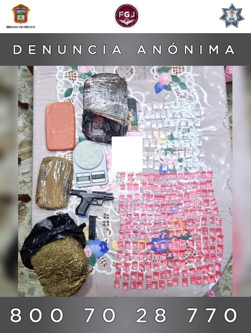 Capulhuac, Méx.- Agentes del Grupo Táctico Operativo (GTO) de la Fiscalía General de Justicia Estatal (FGJEM), en coordinación con personal de la Secretaría de Seguridad Estatal (SS), desmantelaron un punto de venta de droga en este municipio, en donde fueron hallados más de dos kilogramos y medio de marihuana, un kilogramo de cocaína y un arma de fuego, además fue detenido un sujeto por los delitos de violación a la Ley Federal de Armas de Fuego y Explosivos y contra la salud, en su modalidad de posesión con fines de comercialización.