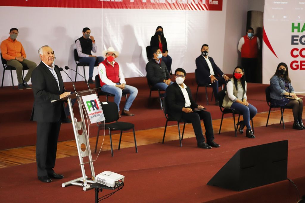 Siguiendo estrictos protocolos de prevención por la Covid-19, en el auditorio Jesús Alcántara Miranda del Comité Directivo Estatal, expresó que “la juventud no está peleada con la capacidad y mucho menos con la responsabilidad”, y señaló que el voto popular que otorgaron los mexiquenses al PRI no es un cheque en blanco sino “un mandato fuerte, contundente, que nos obliga a dar resultados y trabajar de la mano con la gente”.