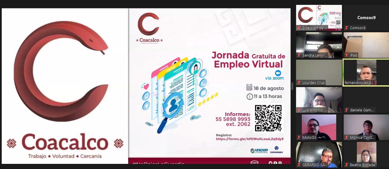 Para ello y con la finalidad de procurar la salud de las y los coacalquenses se implementó la modalidad virtual, para que a través de una reunión zoom, las empresas participantes presenten las vacantes que ofrecen, el perfil que requieren y el rango de sueldos.