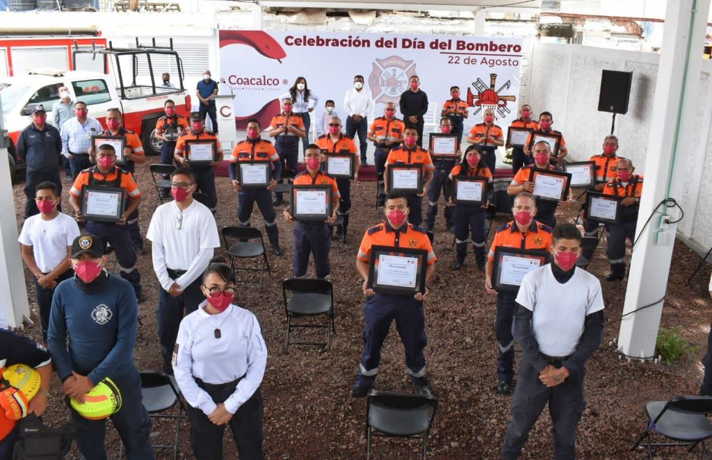 Coacalco, Méx.- En el marco del Día del Bombero, el Alcalde Darwin Eslava entregó reconocimientos a las y los vulcanos que integran esta corporación, en agradecimiento a su responsabilidad, compromiso y valor con que enfrentan las emergencias que se presentan en la localidad.