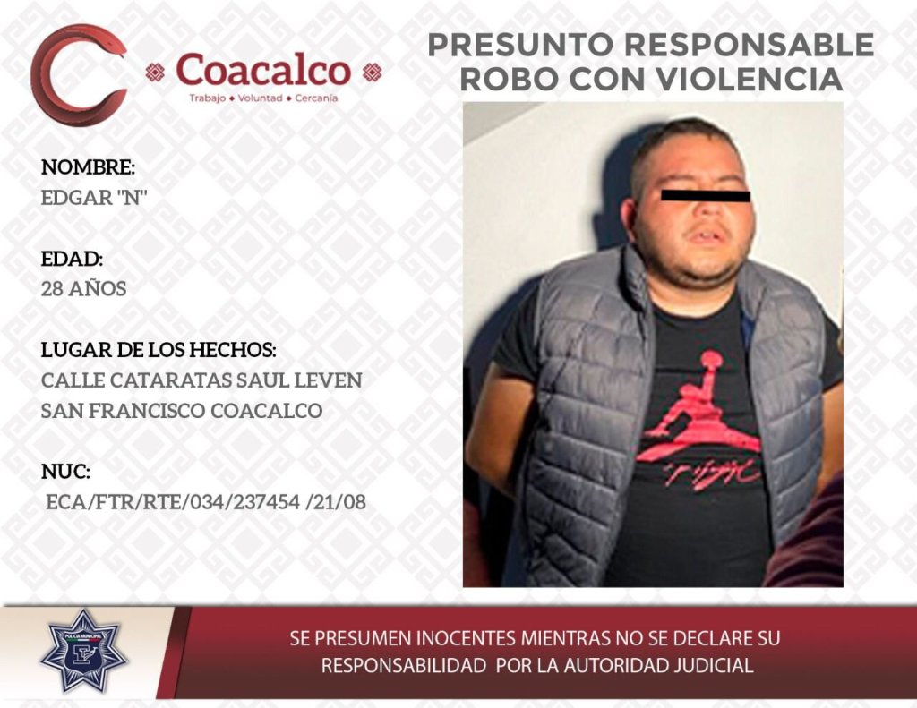 Inmediatamente, los elementos policíacos procedieron a la detención de quien dijo llamarse Edgar “N”, de 28 años de edad.