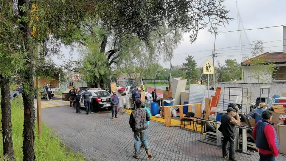 Desde las seis de la mañana, patrullas, transporte pesado y maquinaria llegaron al fraccionamiento Mayorazgos del Bosque para pedirle a quien estaba en el cuidado del campo a que sacara sus cosas ya que supuestamente se tenía una orden de desalojo la cual jamás pudieron mostrar y metiéndose abruptamente entraron al campo.