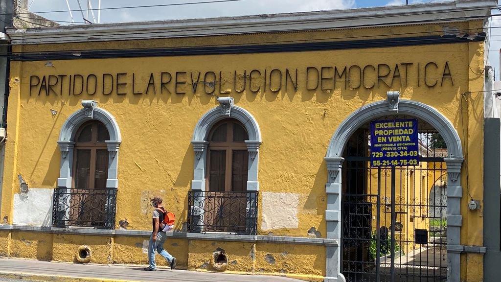 El inmueble que durante varias décadas fue sede del perredismo, desde hace meses tiene una lona anunciando que se encuentra en venta, como últimas posesiones del partido que en las pasadas elecciones obtuvo el 3.7 por ciento de la preferencia electoral, tras su alianza con el PAN y el PRI, de lo contrario hubiera perdido el registro ente el IEEM.