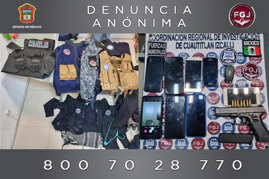 La Fiscalía General de Justicia estatal hace un llamado a la ciudadanía para que en caso de que reconozca a los detenidos como probables partícipes de algún otro ilícito, sean denunciados a través del correo electrónico cerotolerancia@edomex.gob.mx, al número telefónico 800 7028770, o bien, por medio de la aplicación FGJEdomex, la cual está disponible de manera gratuita para todos los teléfonos inteligentes de los sistemas iOS y Android.