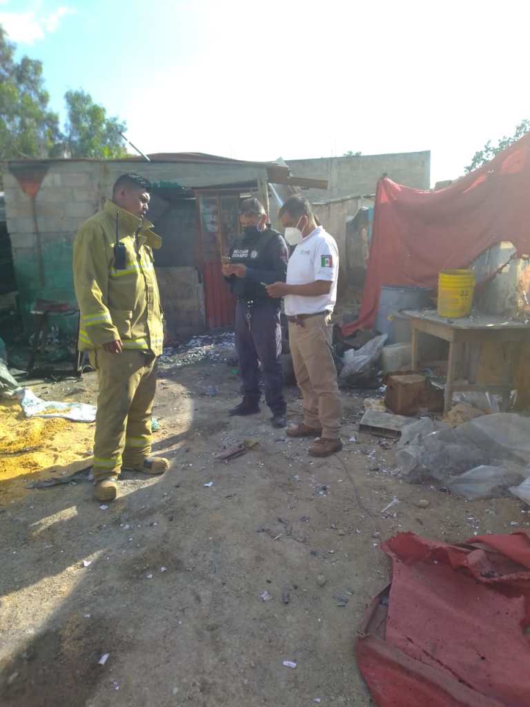 Melchor Ocampo, Méx.- La Coordinación General de Protección Civil y Gestión Integral del Riesgo, así como el C5, informan que se registró una explosión por material pirotécnico en un taller clandestino, ubicado en la calle Jacarandas esquina Av. Pinos, en la colonia la Virgen, en Melchor Ocampo, resultando cuatro personas lesionadas.