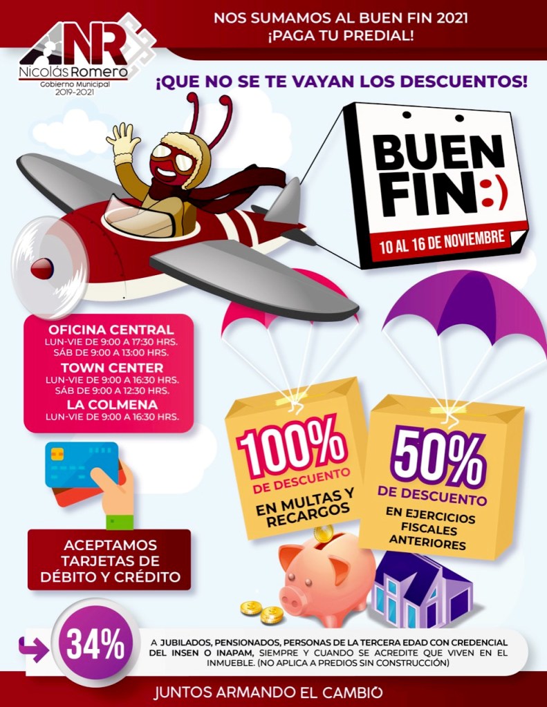 El gobierno local aclaró, que para poder acceder a dicho beneficio, el contribuyente deberá acreditar que vive en el inmueble del que realizará el pago, ya que no participan en esta promoción del “Buen Fin”, aquellos predios que estén sin construcción.