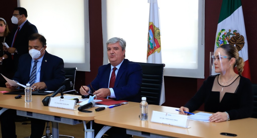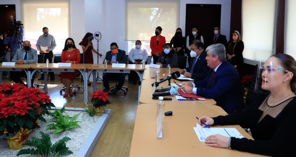 Acompañado de la síndico y regidores durante la Quinta Sesión Solemne de Cabildo, hizo la entrega física del informe que guarda la administración pública municipal durante el ejercicio 2019-2021, al Dr. Pablo Bedolla López, rector de la Universidad Mexiquense del Bicentenario y representante personal del Lic. Alfredo del Mazo Maza, gobernador del Estado de México.