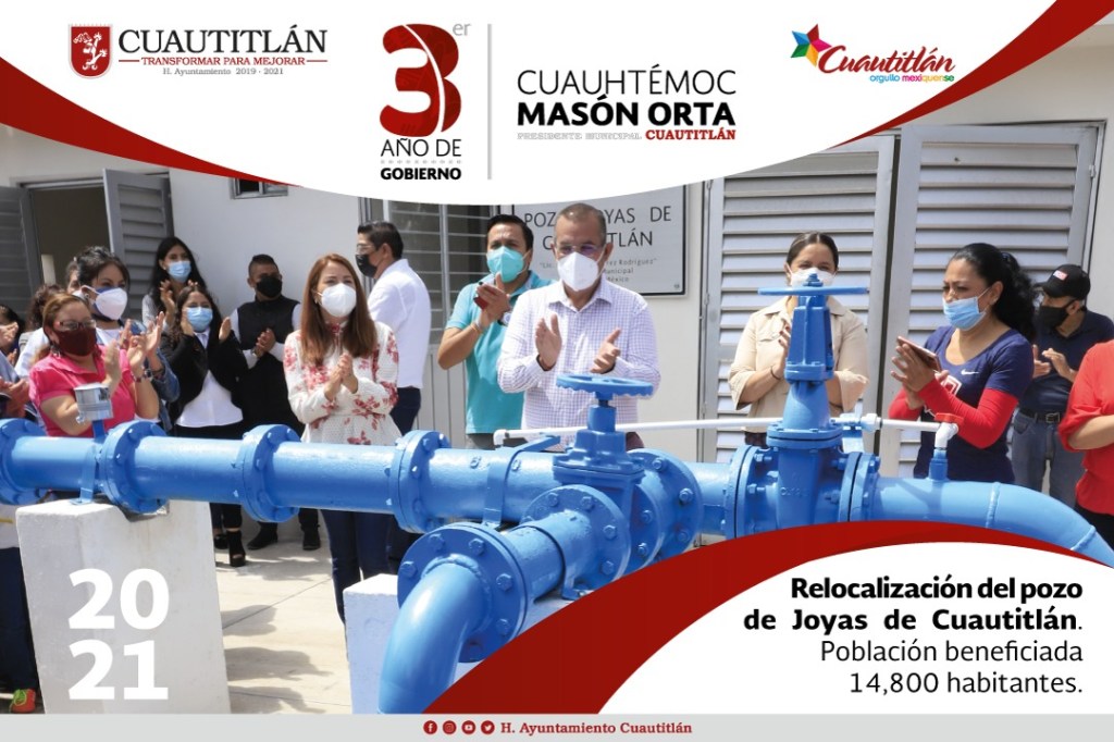 En el tema de mejoramiento de la infraestructura urbana y de servicios, destaca la inversión en la rehabilitación y equipamiento de cárcamos, como el Guadalupe Ferronales; la conexión del drenaje en la calle 5 de mayo, además la introducción de drenaje en la comunidad Tlaxculpas y equipamientos de pozos como en Galaxia, así como la conexión de la línea de conducción en Joyas de Cuautitlán, entre otras.