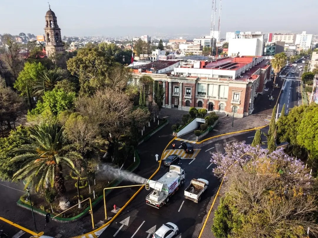 Como parte de estas acciones, esta mañana fueron sanitizadas distintas sedes de la Administración Pública local, como el Palacio Municipal, la Comisaría de Seguridad Pública y Tránsito y el Organismo Público Descentralizado (OPDM), al interior de sus instalaciones, como al exterior.