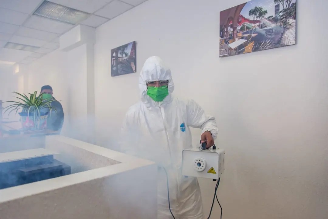 El saneamiento de los edificios y de los espacios públicos se enmarca en la instalación del Comité Municipal de Salud, el viernes pasado, encabezado por Tony Rodríguez, donde se aprobaron acciones urgentes para contender los contagios en el municipio.