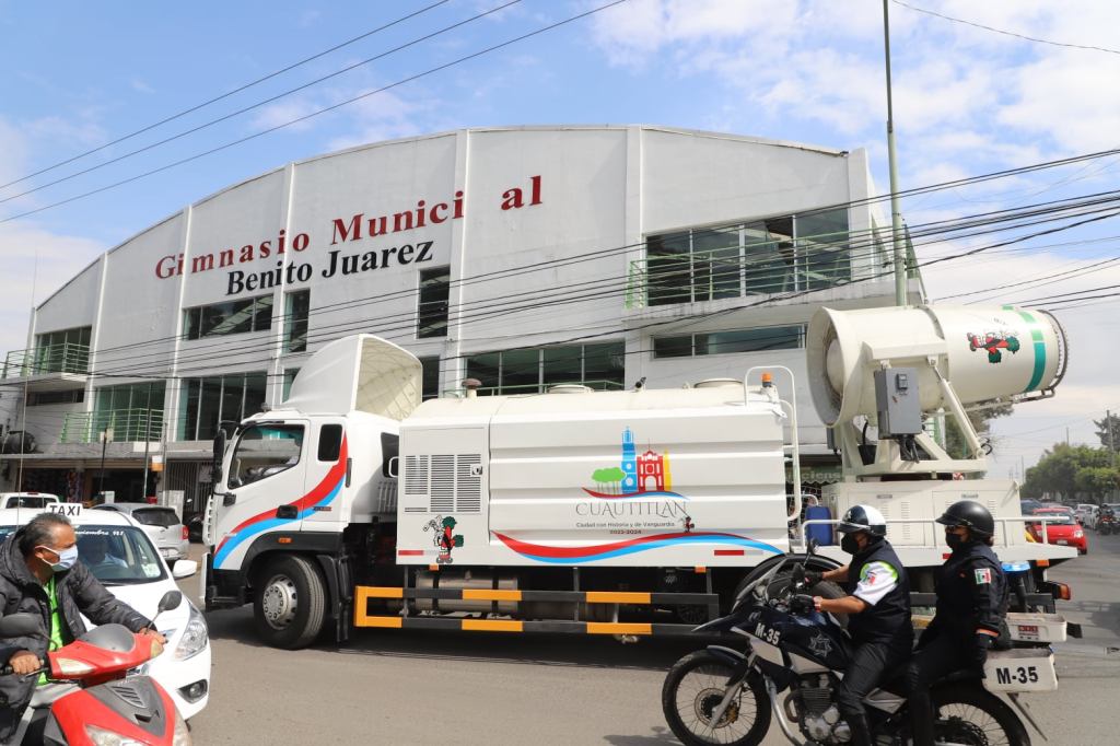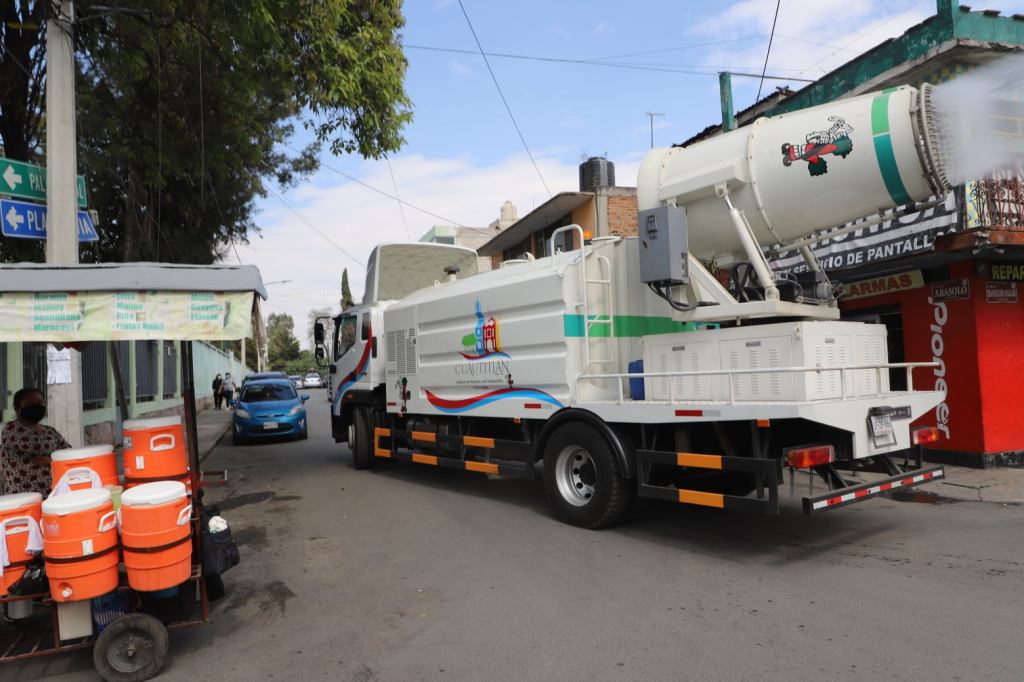 Con el fin de brindar a los cuautitlenses espacios públicos seguros y libres del virus del COVID-19, el Gobierno de Cuautitlán utiliza un camión sanitizante. Aldo Ledezma, anunció que busca brindar a la población mayor seguridad posible tanto en sus casas como en los espacios públicos, apuntó.