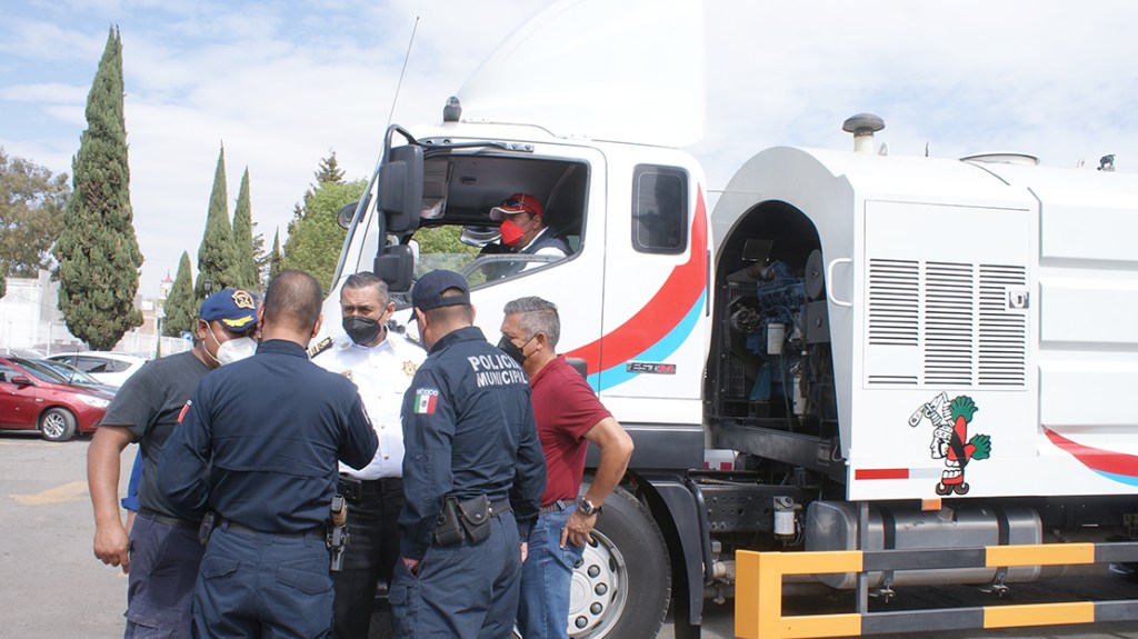 El vehículo tiene adaptado una turbina para rociar agua con sanitizante en las calles, avenidas, banquetas, edificios y árboles de la ciudad y cuenta con una tecnología proveniente de China que ya se utiliza en los países del primer mundo como Dubái.