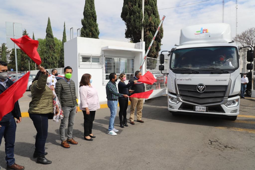 Cuautitlán, Méx.- El Presidente Municipal Constitucional de Cuautitlán, Aldo Ledezma Reyna, acompañado de integrantes del cabildo (síndico y regidores), dio el banderazo de salida al vehículo sanitizador, el cual estará sanitizando calles, avenidas, hospitales y espacios públicos de este municipio.