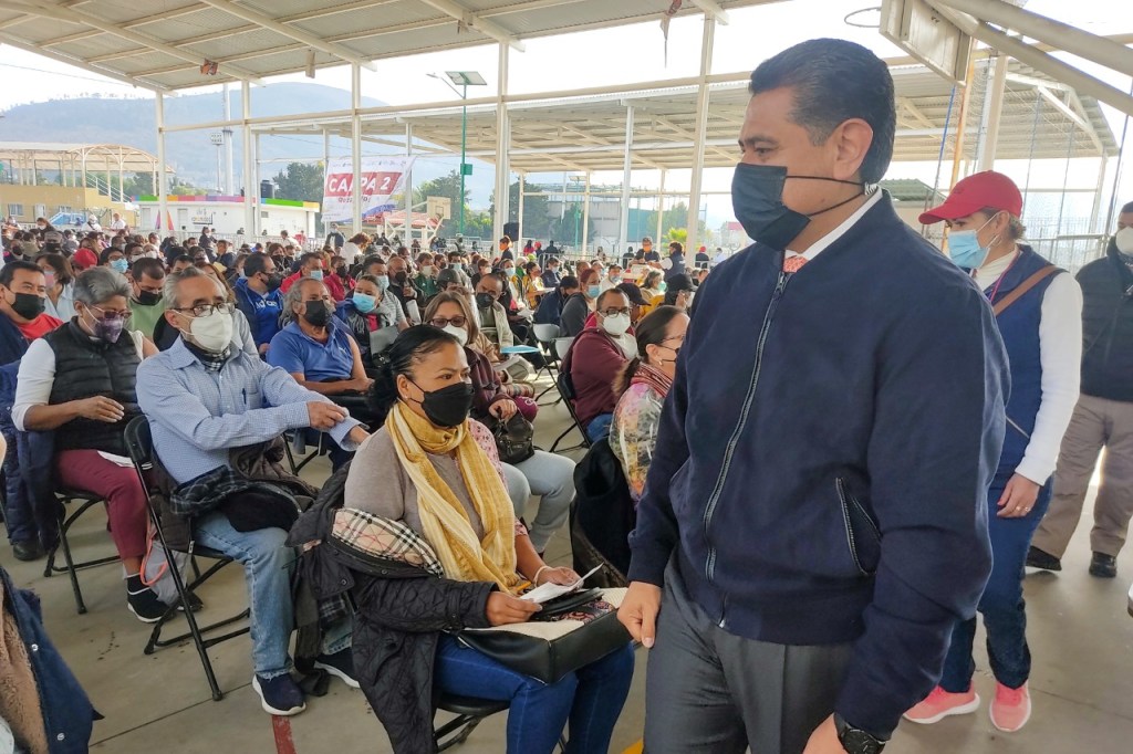 Tlalnepantla, Méx.- El Alcalde Marco Antonio Rodríguez Hurtado supervisó la atención que personal del sector salud y servidores públicos brindan en la Jornada de Vacunación contra el Covid-19, que se lleva a cabo en Tlalnepantla y en la que se aplica la dosis de refuerzo a personas de 50 a 59 años de edad.