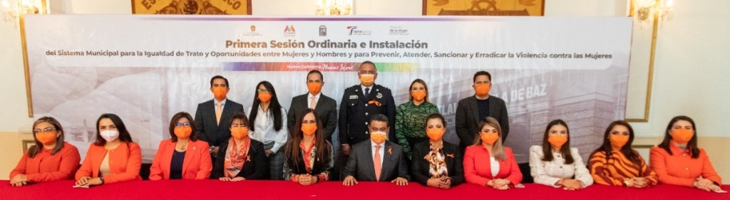 En el marco del Día Naranja rindieron protesta como integrantes de este Sistema Municipal: el Alcalde Marco Antonio Rodríguez Hurtado; la Presidenta del Sistema DIF Municipal, María Gómez Martínez; la titular de la Dirección de la Mujer, Ivonne Jiménez García; el Secretario del Ayuntamiento, Edmundo Ranero Barrera, así como la Síndica Arleth Stephanie Grimaldo Osorio y los Regidores Víctor Manuel Pérez Ramírez; Teresa Garduño Suárez; Nadya de Jesús Cruz Serrano y María de Lourdes Curiel Rocha.