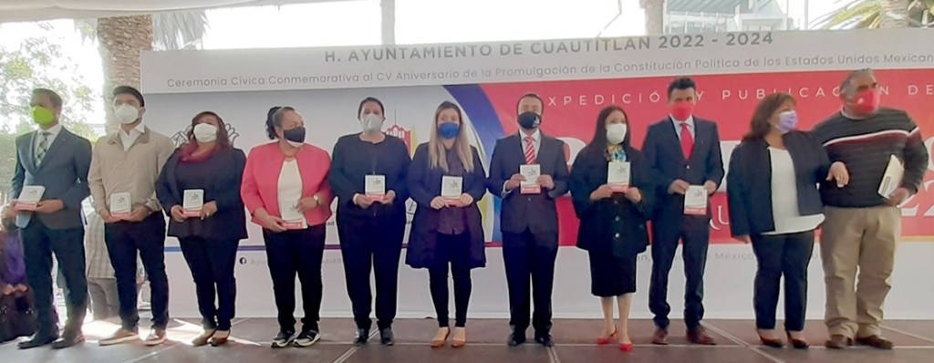 Cuautitlán, Méx.- En el marco del 105 Aniversario de la Constitución Política de los Estados Unidos Mexicanos, el H. Ayuntamiento de Cuautitlán México promulgó el Bando Municipal 2022, pergamino que instaura las bases de una vida ordenada, tranquila y armónica para la población cuautitlense.