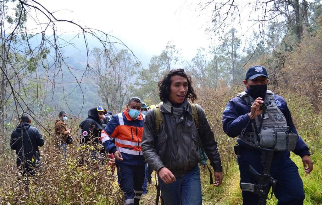 Pablo Millán de 28 años y la mascota “Maya” fueron extraídos en helicóptero, los trasladaron al helipuerto del Colegio de Policías de Tlalnepantla para realizarles una revisión más detallada.