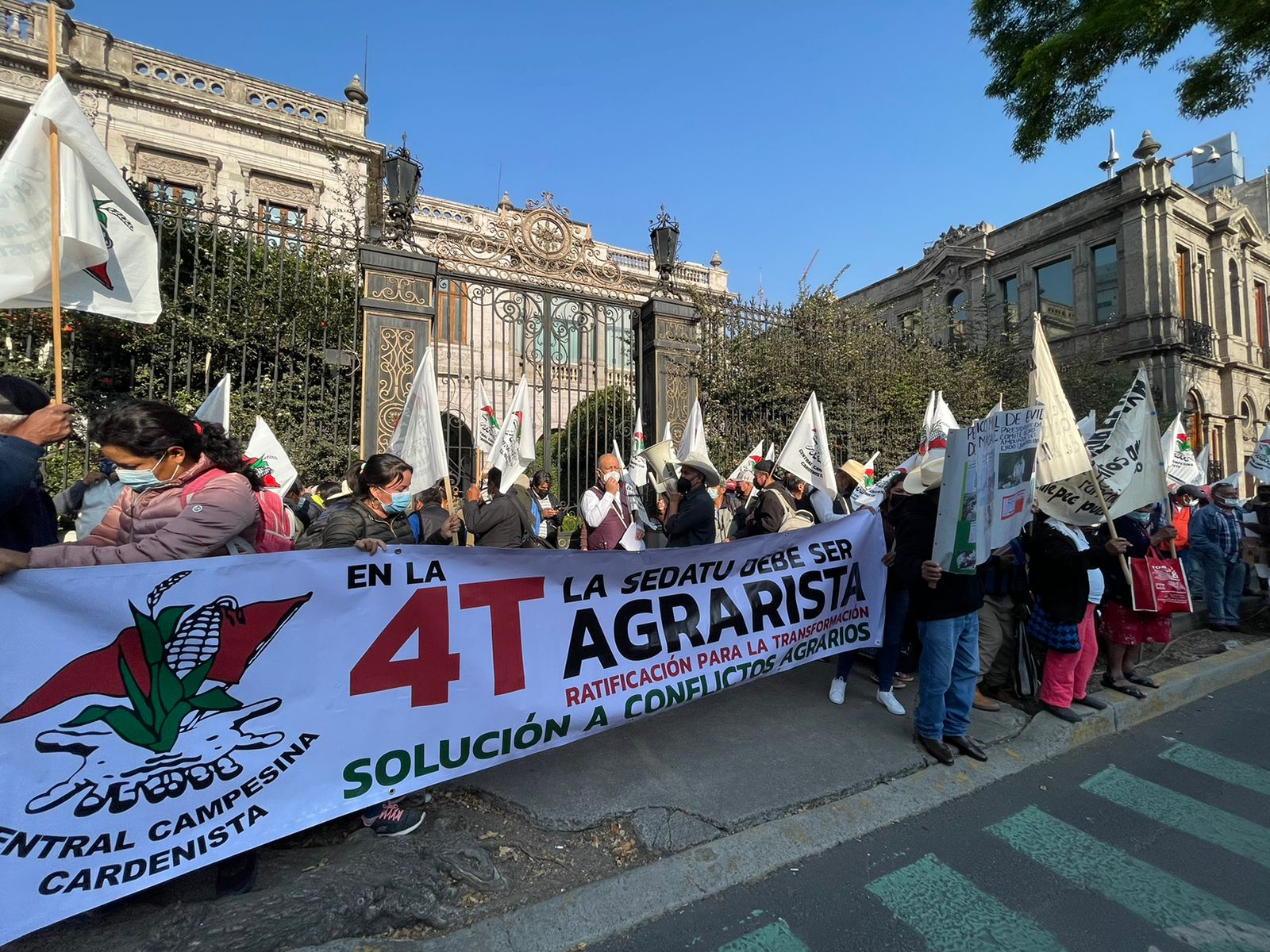 VALLE DE MÉXICO. Frente a la Secretaria de Gobernación, integrantes de la Central Campesina Cardenista (CCC) iniciaron este viernes la Jornada de Lucha Agraria para exigir al Gobierno Federal establecer una nueva política de Bienestar en el Campo, que resuelva los conflictos sociales-agrarios, y que el Instituto para Devolver al Pueblo lo Robado, destine recursos para el mismo propósito.