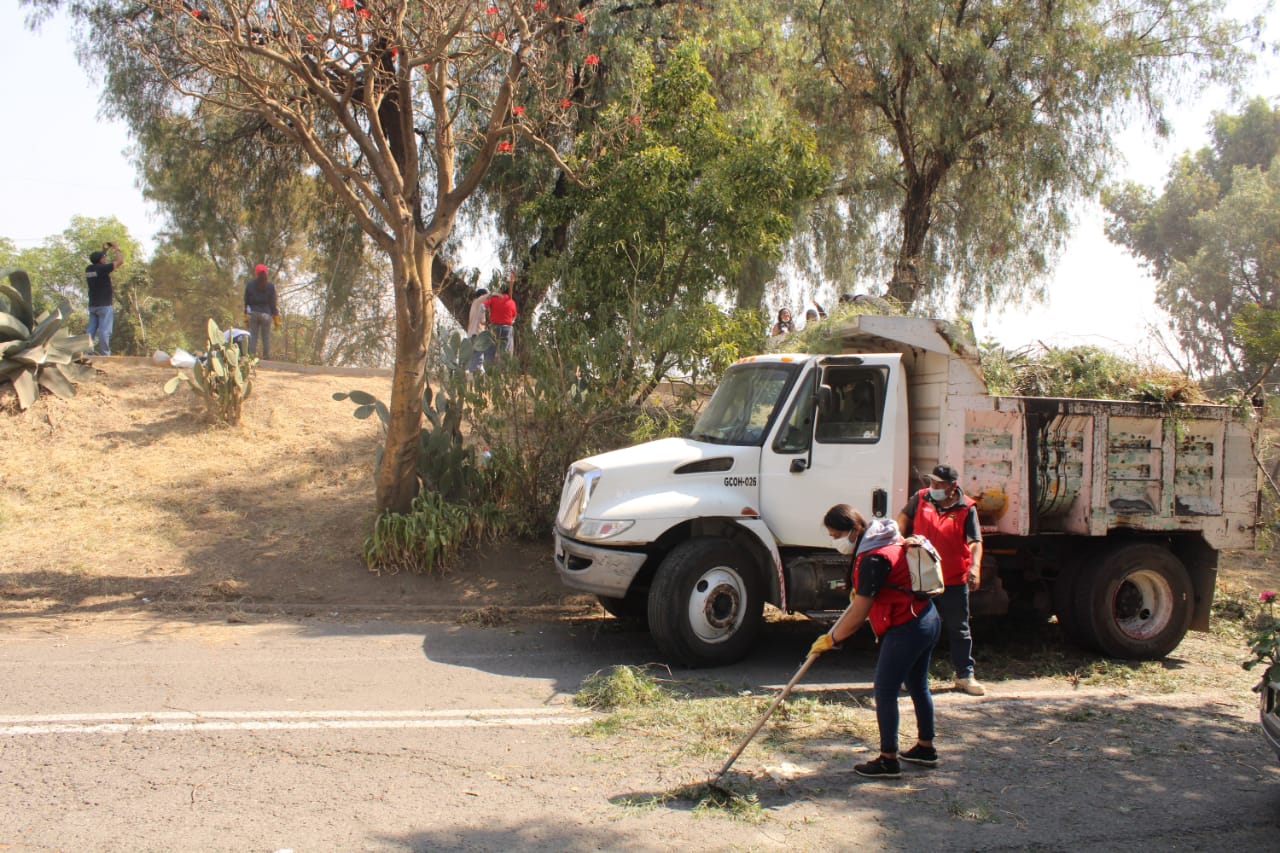 Entre los trabajos realizados en la zona se efectuó la poda de pasto y el retiro de maleza, el clareo de árboles y arbustos, la pinta de paredes, así como recolección de basura y limpieza en general.