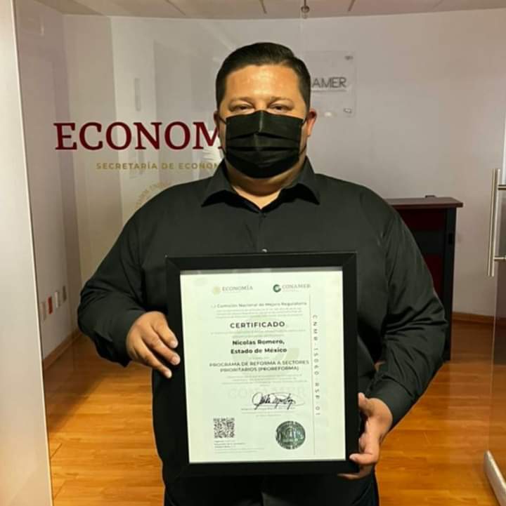 Nicolás Romero, Méx.- Este municipio fue distinguido con la certificación Programa de Reforma a Sectores Prioritarios (PROREFORMA), por su contribución a la agilización de trámites y la facilitación de la inversión productiva, misma que otorga la Comisión Nacional de Mejora Regulatoria (CONAMER).
