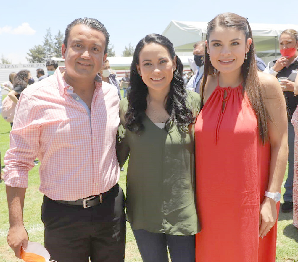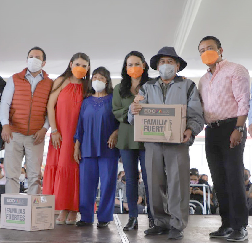 Aldo Ledezma y la presidenta del Sistema DIF Brenda Aguilar Zamora, acompañaron a Alejandra Del Moral durante la entrega de apoyos en “Jornada Familias Fuertes”.
