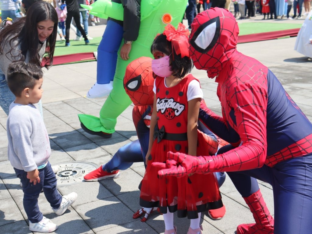 Además, los pequeñines se encontraron en la explanada municipal, con superhéroes de películas y personajes de televisión como el “hombre araña”, “la mujer maravilla”, “Hulk”, “Batman”, Gatúbela”, “Elmo”, “Superman”, “Woody”, “Buzzlightyear”, “Piratas del Caribe”, “la hormiga atómica”, el elenco de “la vecindad del chavo del 8”, así como cosplayers, anime y la botarga de la hormiga “Nicky,” símbolo de la identidad histórica del municipio.