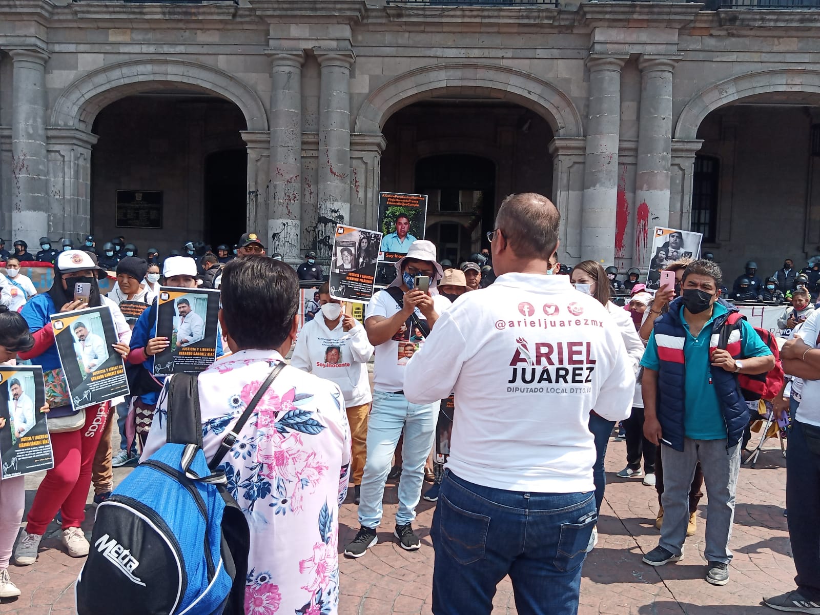 Los diputados Ariel Juárez y Gerardo Ulloa acompañaron a colectivos a protesta en Palacio de Gobierno