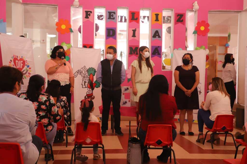 La convivencia en los espacios educativos del sistema DIF, forman parte de las actividades de los pequeños y permiten disfrutar de la estancia durante la instrucción básica de los pequeños, reconocieron las autoridades en el marco de este festejo con la mamás.