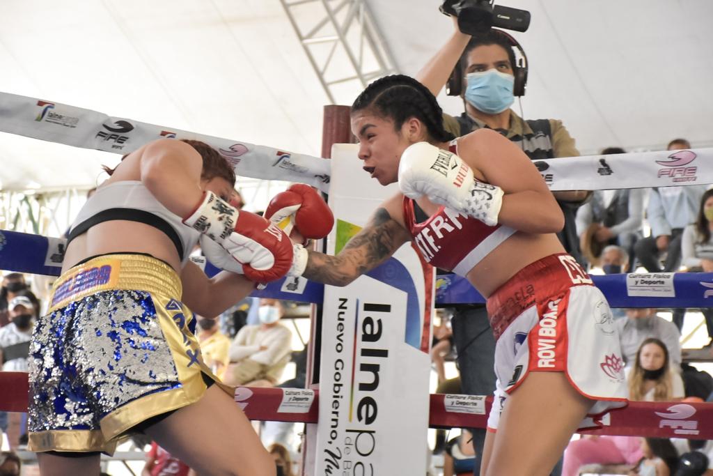 Al Alcalde atestiguó las seis peleas realizadas en la Explanada Municipal, en donde la estelar fue entre Jaky Calvo contra Mary “Polvorita” Salinas, quienes brindaron a los asistentes un espectáculo de gran nivel, culminando con el triunfo, por decisión unánime, de Jaqueline.