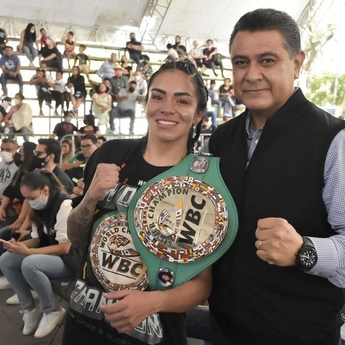 Tlalnepantla, Méx.- Tlalnepantla vivió una fiesta boxística al ser sede del Campeonato Mundial Plata, en la división Peso Mosca, del Consejo Mundial del Boxeo (CMB), pelea en la que se coronó campeona Jaqueline “Jaky” Calvo quien recibió su cinturón de manos del Presidente Municipal, Marco Antonio Rodríguez Hurtado.
