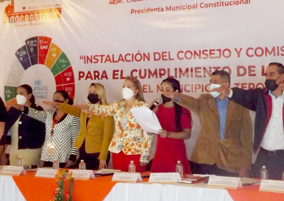 Cabe señalar que en este Consejo y Comisión Municipal de la Agenda 2030 de Tepotzotlán está integrado por los titulares de Derechos Humanos, Seguridad Pública, Servicios Públicos, Desarrollo Social, Medio Ambiente, Desarrollo Urbano, Agua Potable y el Sistema Municipal DIF, así como por integrantes de la Iniciativa Privada, además del sector social y educativo.