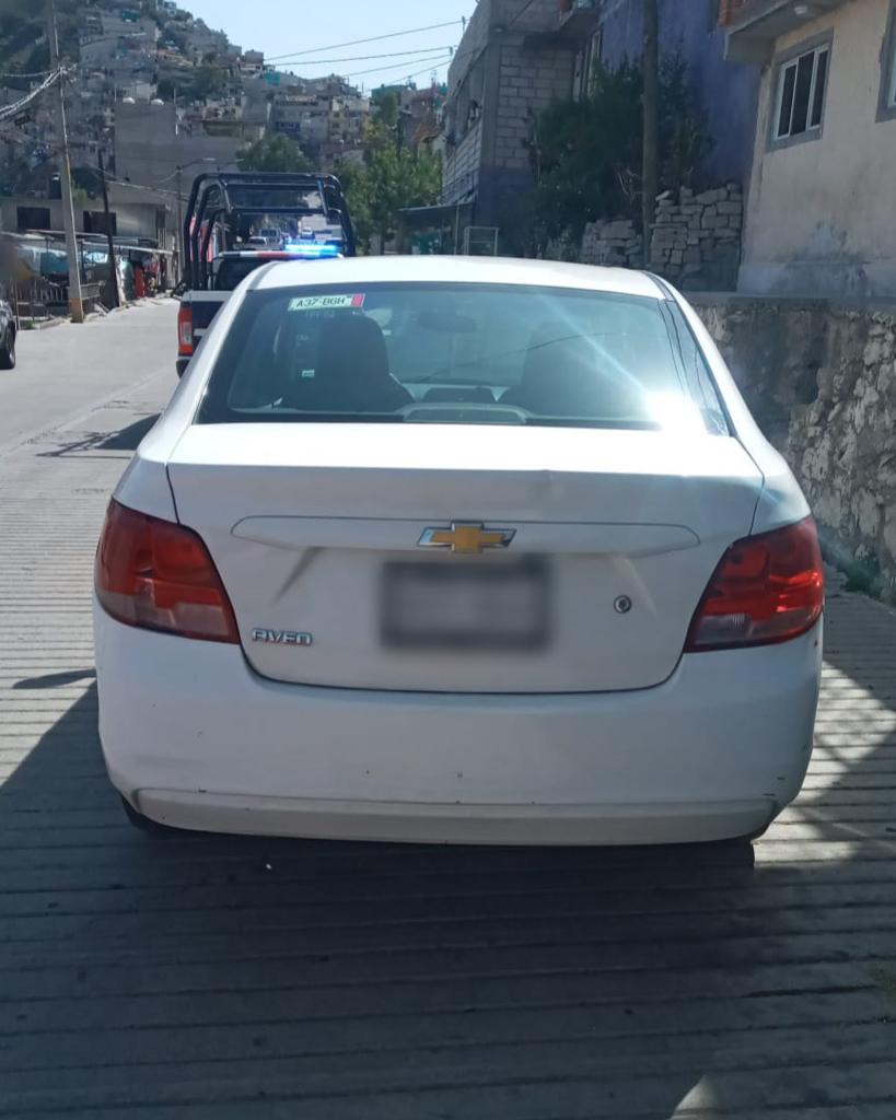 Los uniformados tomaron conocimiento del robo y de manera inmediata iniciaron una persecución hasta dar alcance a los pubertos delincuentes que escapaban en un automóvil Chevrolet tipo Aveo, color blanco, placas A37BGH.